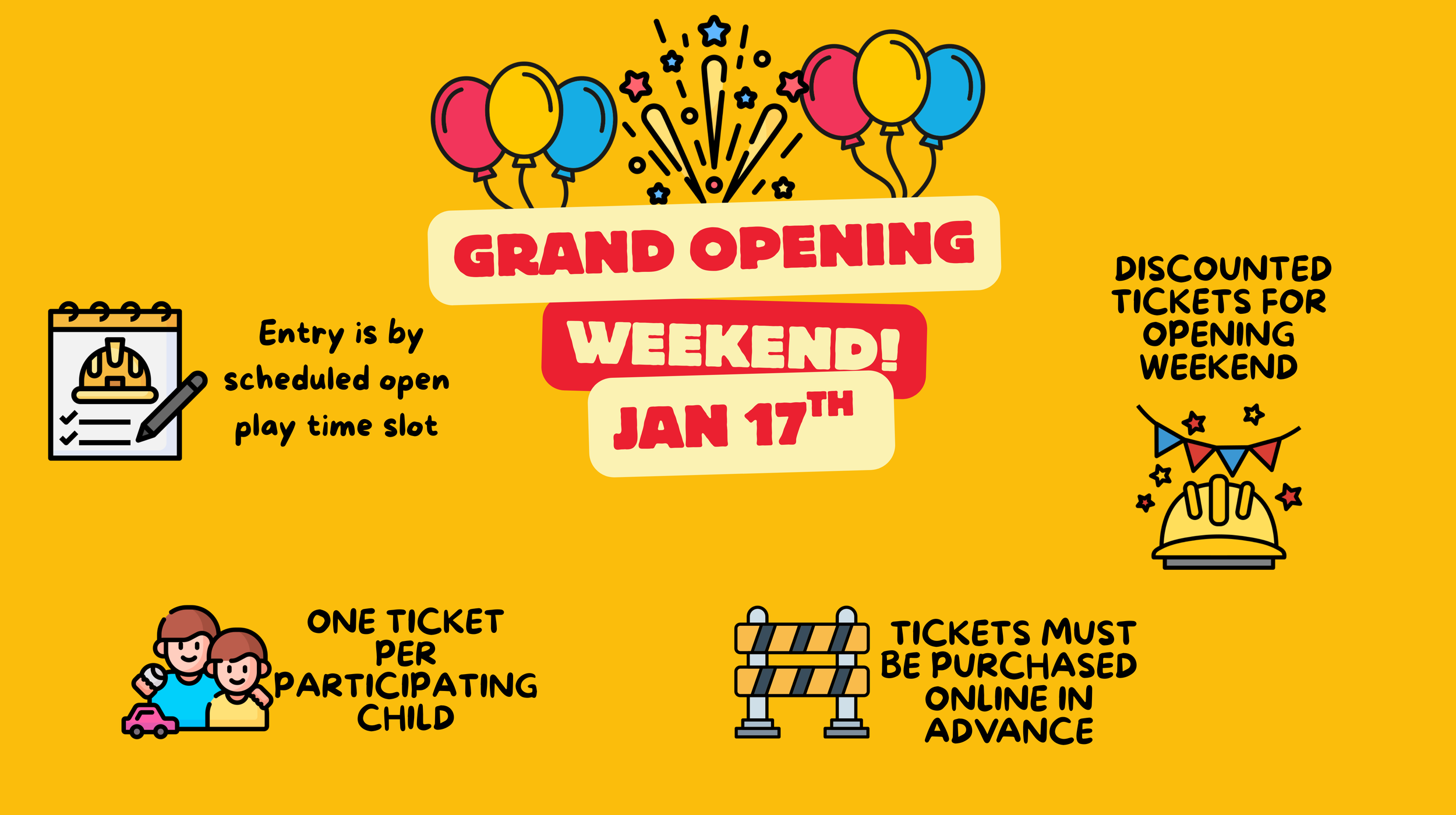Celebrate big with our construction-themed parties! Packages start at $299.99 and includes private party room. Bring your own décor to make it your own!
